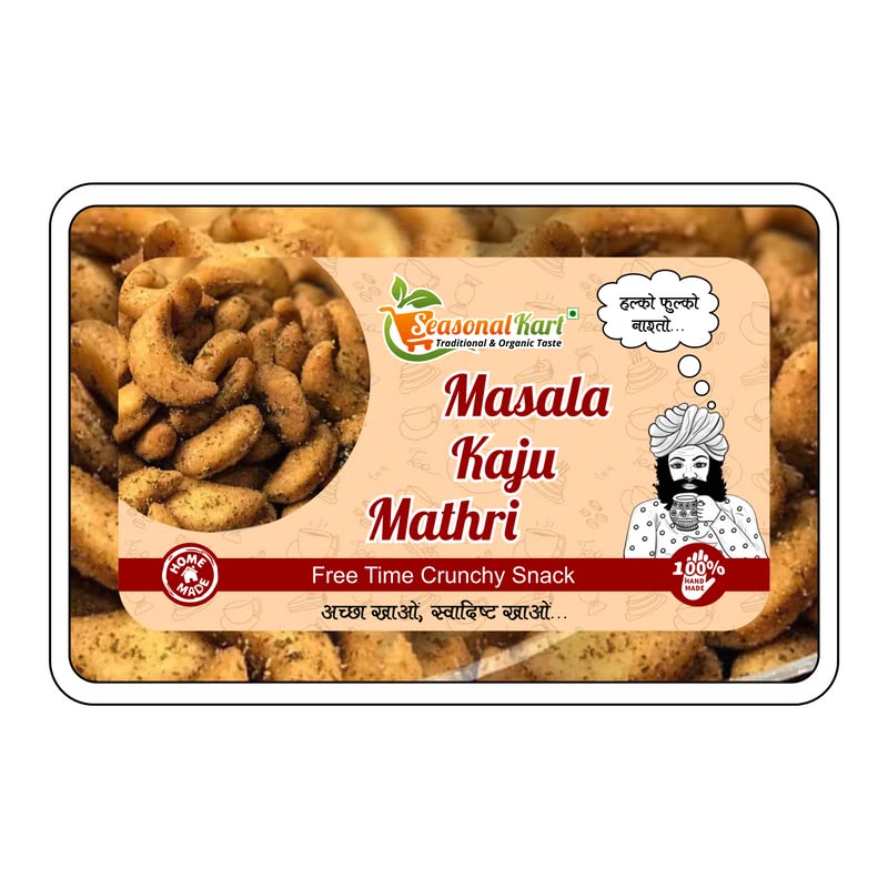 Masala Kaju Mathri We bring the always prepacked hygiene snack item for everyone to consume it anytime with their Chai Tea Coffee anything. Traditional snack poducts loved by everyone to keep their mouth munching cripsing. We have wide range of products such as Sweets Peanuts Channa Foxnut Namkeen Mixture Mathi. Seasonal Kart Homemade Special Masala Kaju Mathri Spicy Namkeen Pure and Healthy Preservatives Free Evening Tea Time Snacks Namkeen Crispy Ready to Eat