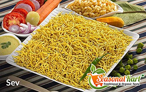 Seasonal Kart Namkeen Rajasthani Besan Sev (Poha Sev) Crunchy Besan Sev Taste Made of Besan Special laung Sev |About Us:We believe that our reputation must be based on the quality of our products. We have traveled across the country to handpick the finest quality products at the best possible rates. We maintain great taste and guaranteed quality throughout the year and our products are sure to be your new favorites after your first purchase.About Product:Besan Sev is one of India's favorite namkeen delicacies. Our Besan Sev is made organically grown mixed with some electrifying spices healthy nuts and a crunchy Mixture. For healthy snacking. Be it in the mornings or the evening you cannot miss this with your hot cup of tea. Its crispy texture invites people of all age groups. Indians are spicy and crunchy food lovers and hence ‘namkeen' forms one of their must-have snack items. Our flavor-some snacks will not only satisfy your desire for tasty foods but also serve your family and friends for festive meetings in the best way. The raw material and packaging material used in the products are purchased with utmost care and selection criteria. The oil pulses grains and spices are all minutely examined sorted cleaned and then used in the final product to provide that premium quality. Enjoy the mouth-watering taste of organic and healthy Indian snacks by Seasonal Kart Mixture a famous mixture that people of all age groups enjoy. It is not only a go-to snack for kids but also for adults as it is not as spicy as the rest of the namkeens available in the market. It's a unique blend of ingredients that makes it loved by all.Ingredients:Besan(Chickpeas flour) clove powder carom seed powder black pepper powderCountry of Origin: IndiaSeasonal Kart: Traditional & Organic Taste