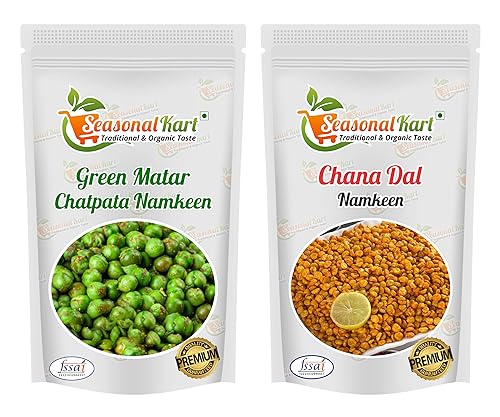 HomeGrocerySnacksNamkeenSEASONALKART Combo of Masala Green Matar & Chatpata Chana Dal Crispy Namkeen Snacks |Roasted Green Peas Masala & Chana Dal (800 Grams)