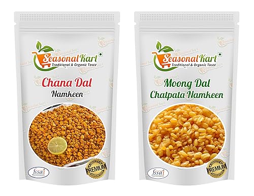 SEASONALKART Combo Pack of Homemade Chatpata Chana Dal & Moong Dal Namkeen Spicy Chana Dal Masala Snacks| Chemical Free| Healthy Snacks | No Added Preservatives|