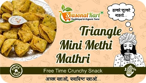 SEASONALKART Homemade Mini Triangle Methi Mathri 400 Grams Ready to Eat Mathri Snacks Mini Methi Matthi in Trigular Shape Small Methi Mathri Indian Namkeen Nashta Traditional Indian Snacks