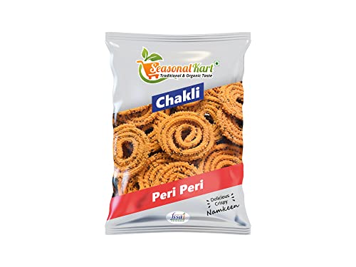 PeriPeri Chakli made with the best quality ingredients While it is perfect to have on a cold rainy day with a cup of chaai this versatile snack is also light enough to enjoy on a hot summer's day with a glass of juice or to take along to school or office in a snack box Tea-time is never complete without dry snacks. Carry a pouch of chakli to enjoy mini office breaks or on picnics. A perfect to have on a cold rainy day with a cup of chai this versatile snack is also light enough to enjoy on a hot summer's day with a glass of juice or to take along to school or office in a snack box!