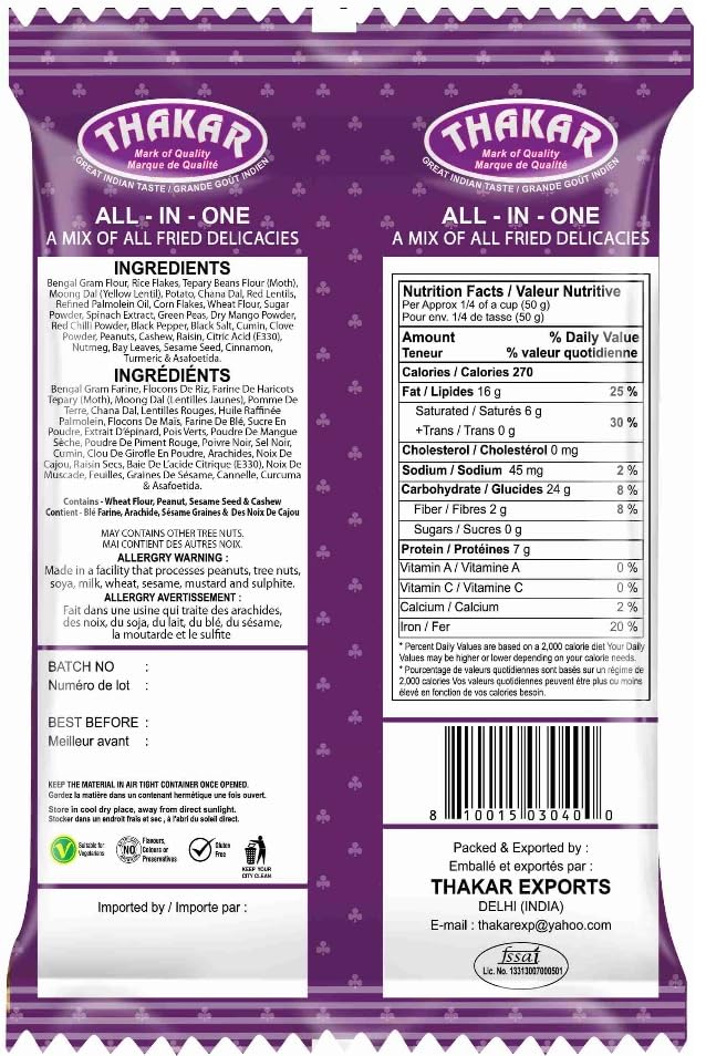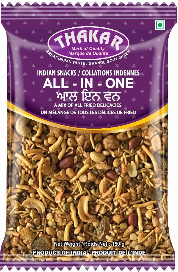 Thakar All-in-One Mixture 150g is a delicious snack that blends various types of crunchy namkeen nuts and spices to produce a classic Indian taste. It is ideal for all ages and can be enjoyed at informal gatherings outings or anytime. The snack is packaged to maintain its freshness making it an essential item for every household. It provides an authentic Indian flavor to your snacking enjoyment.