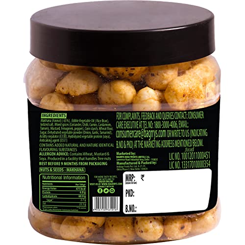Bagrry's Makhana Foxnut 100gm Jar | Mint & Pudhina Flavour | Gluten Free | Non-Fried | Air Popped | Healthy Super Food | Calcium Rich