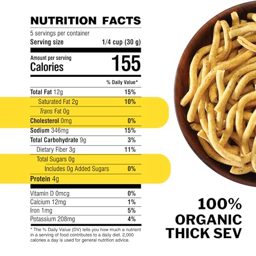 Indulge in the delicious taste and crunchy texture of our thick sev a popular traditional Indian snack. Made from premium-quality gram flour and seasoned with a blend of authentic Indian spices our thick sev is a perfect snack for anyone who loves the bold and vibrant flavors of Indian cuisine.
