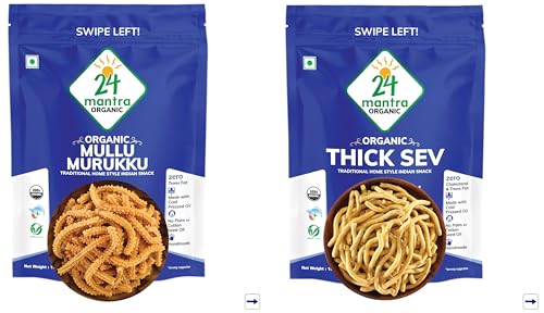• Product 2: 24 Mantra Organic Mullu Murukku brings the traditional flavors of India to your taste buds making it a must-try snack for lovers of Indian cuisine.