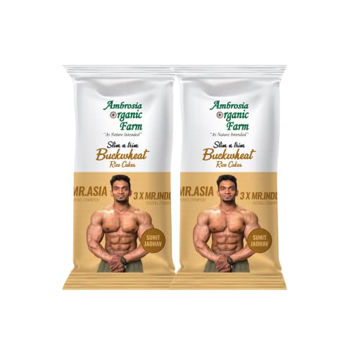 Ambrosia Organic Farm Buckwheat Rice Cake Gym Edition, No Fat, No Cholesterol, No Sugar, Gluten Free, Lightly Salted, All Natural (180g Each) (Pack of 2)