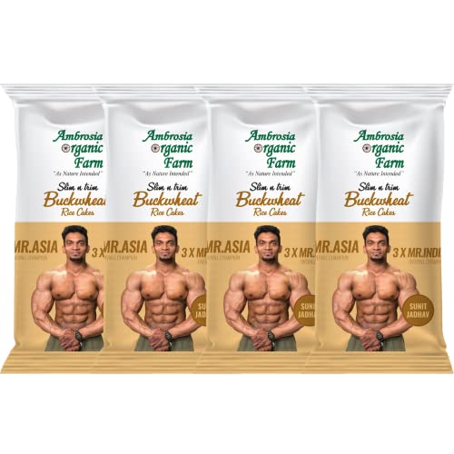 Ambrosia Organic Farm Buckwheat Rice Cake Gym Edition, No Fat, No Cholesterol, No Sugar, Gluten Free, Lightly Salted, All Natural (180g Each) (Pack of 4)