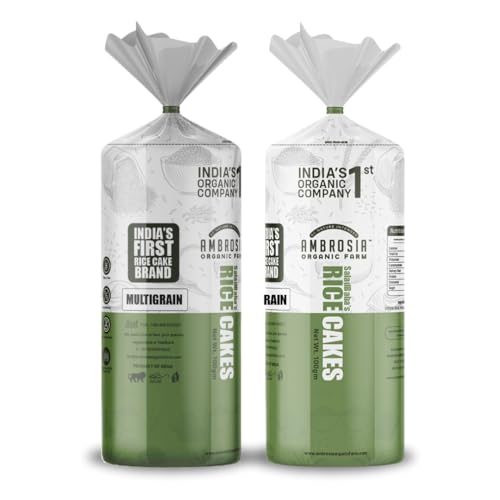 Ambrosia Organic Farm Healthy Multigrain Rice Cake 27 Calories, No Fat, No Cholesterol, No Sugar, Gluten Free, Lightly Salted. Min 120gm (Pack of 2)