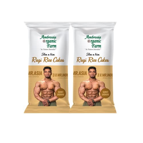 Ambrosia Organic Farm Ragi Rice Cake Gym Edition, No Fat, No Cholesterol, No Sugar, Gluten Free, Lightly Salted (180g Each) (Pack of 2)