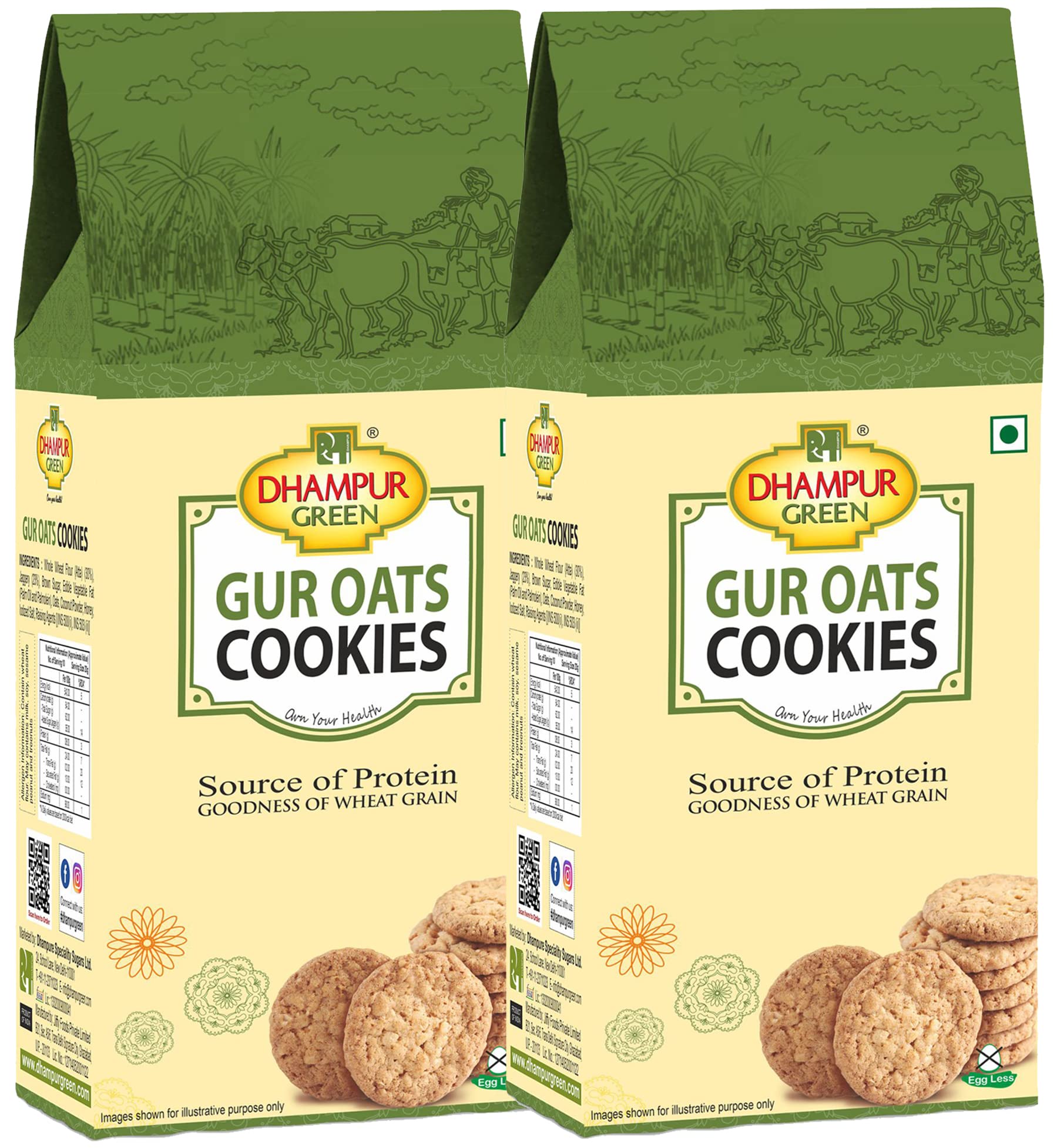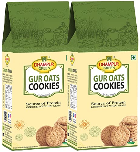 Wholesome and delicious Gur Atta Biscuits with the natural sweetness of organic jaggery. This junk-free snack is mindfully made to nourish you and your family so that you can enjoy it without feeling guilty. Made after a careful selection of ingredients we at Dhampur Green offer healthy snacks that digest slow avoiding any sudden spikes in blood sugar levels. Enjoy falling in love at the first bite! No Preservatives or Artificial Flavours.