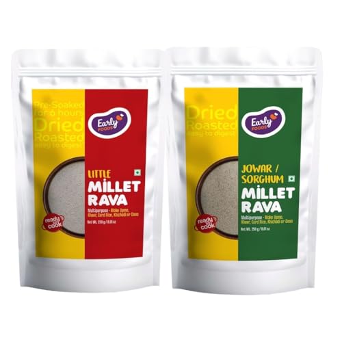 Early Foods : Assorted Pack of 2 - Little Millet & Jowar Rava | Instant Millet Sooji | Roasted Millet Rava | Millet Idli Rava | Soaked for 6Hrs | Instant Breakfast Mix