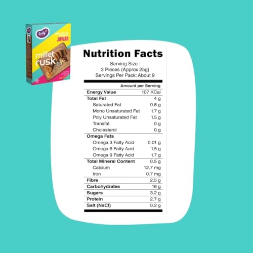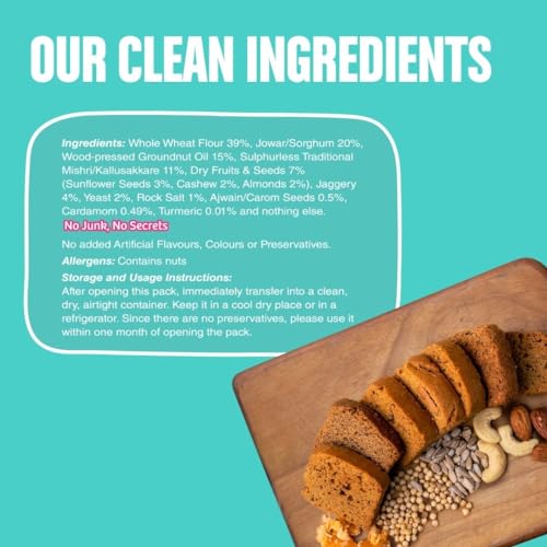 100% CLEAN Ingredients: Our Millet Rusk is crafted with a nutritious blend of millets whole wheat jaggery/gur cold-pressed groundnut oil almonds assorted nuts and seeds. It's wholesome and a guilt-free Jowar Toast.