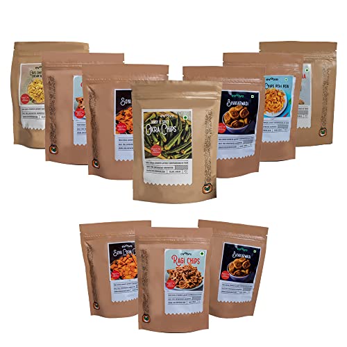 Evolve Combo Healthy Snacks for Kids Adults | Gluten Free Baked Vacuum Fried Low Calorie High Protein Weight Loss Friendly Crunchy Snack | Pack of 10