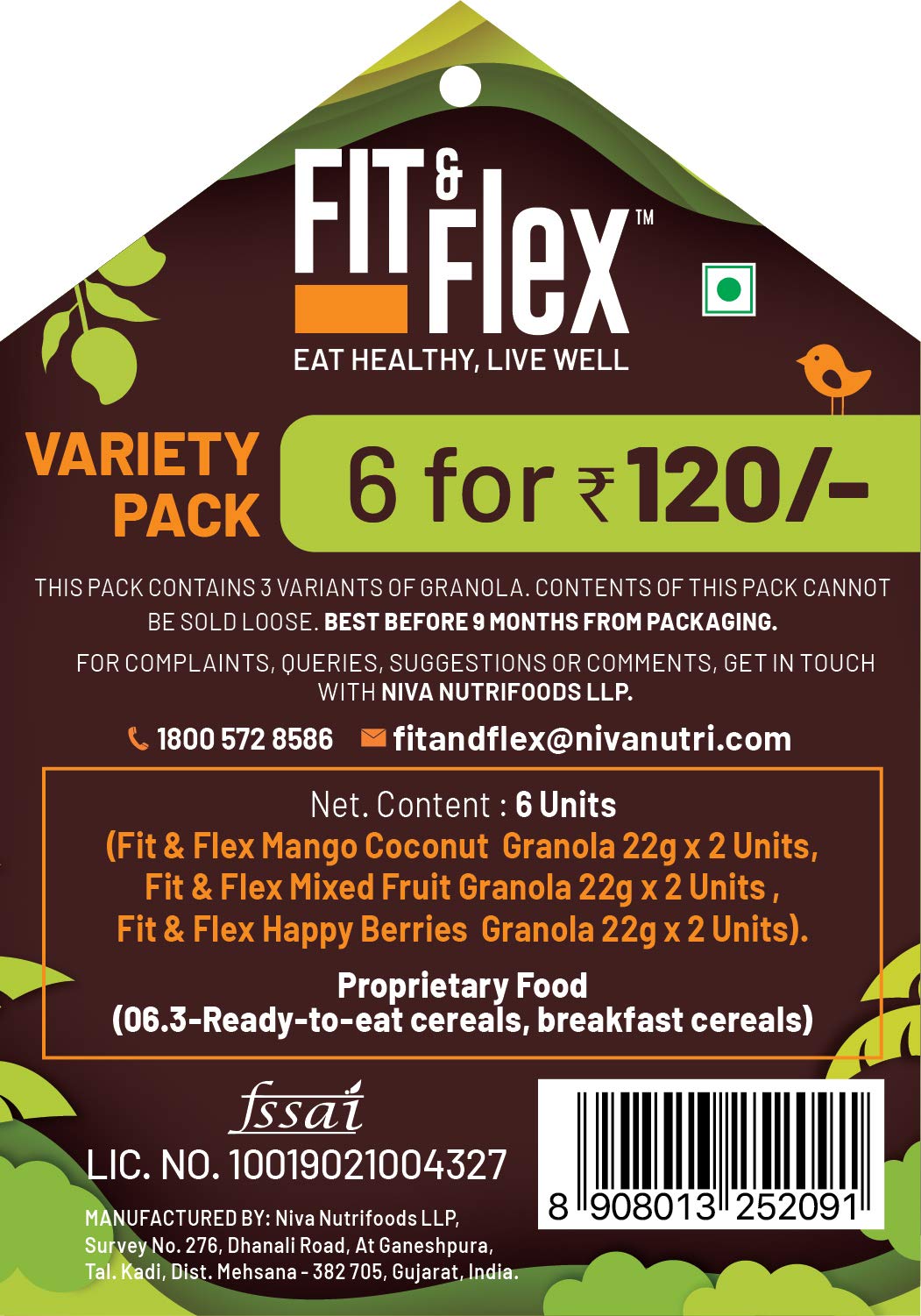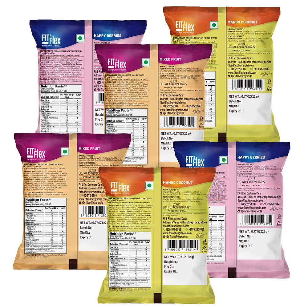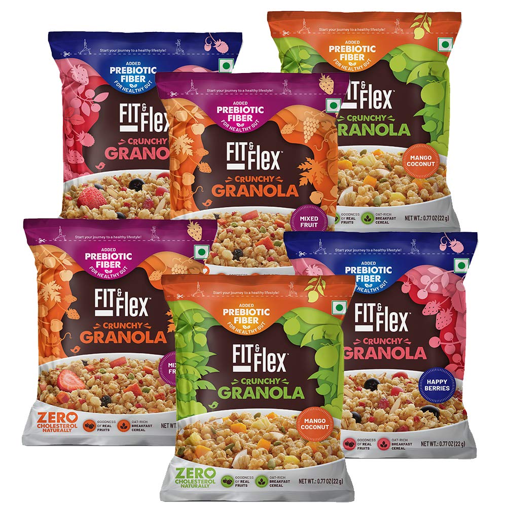 FIT & FLEX Baked Variety Pack Granola Oat Rich Cereal With High Protein And Fibre Ready To Eat Healthy Breakfast Food - As Seen On Shark Tank India - 22 G X 12 (Pack Of 12) - Variety Pack
