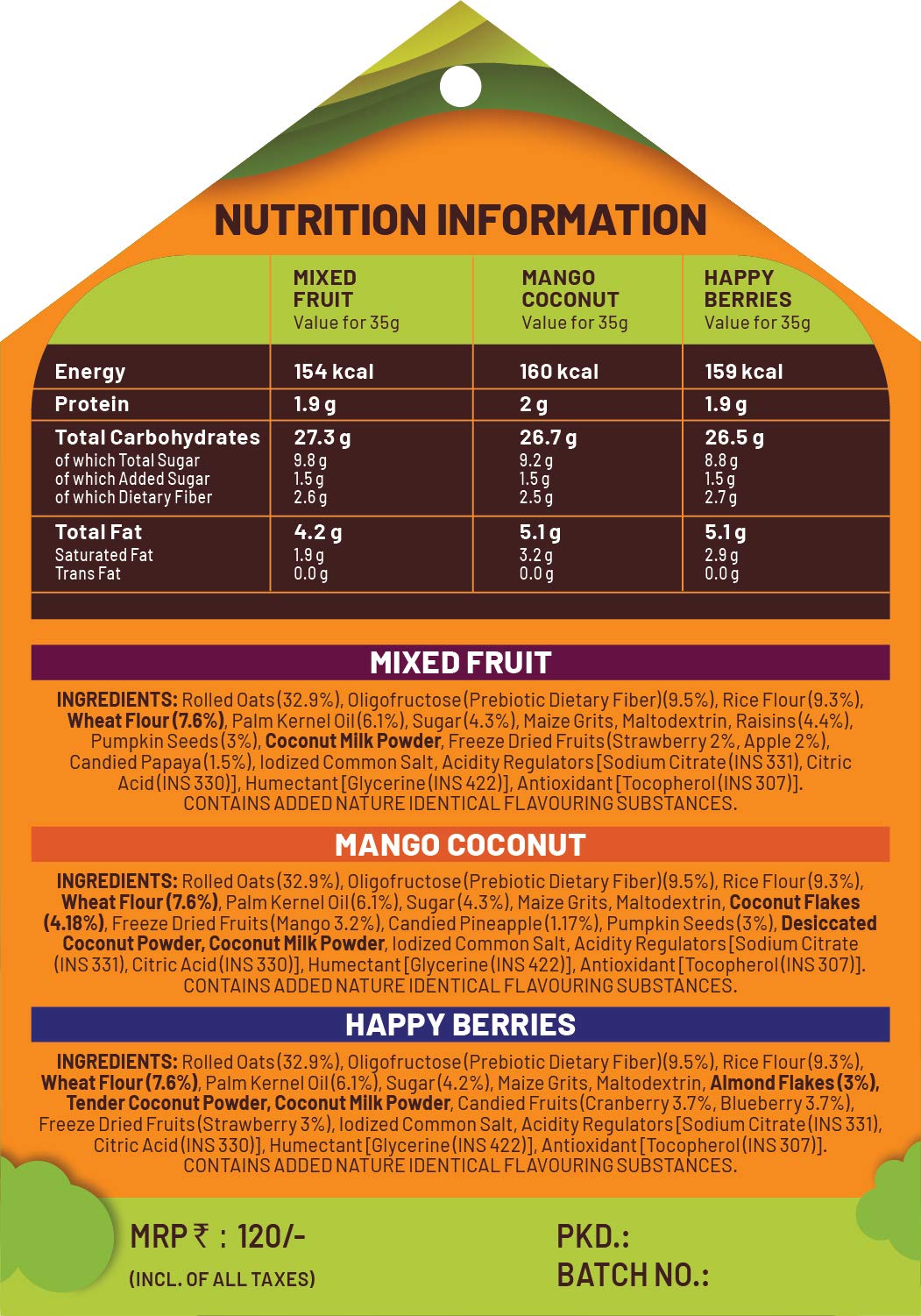 • Diet Type Vegetarian Flavour Chocolate & Almond Mango Coconut Mixed Fruit & Mixed Berries