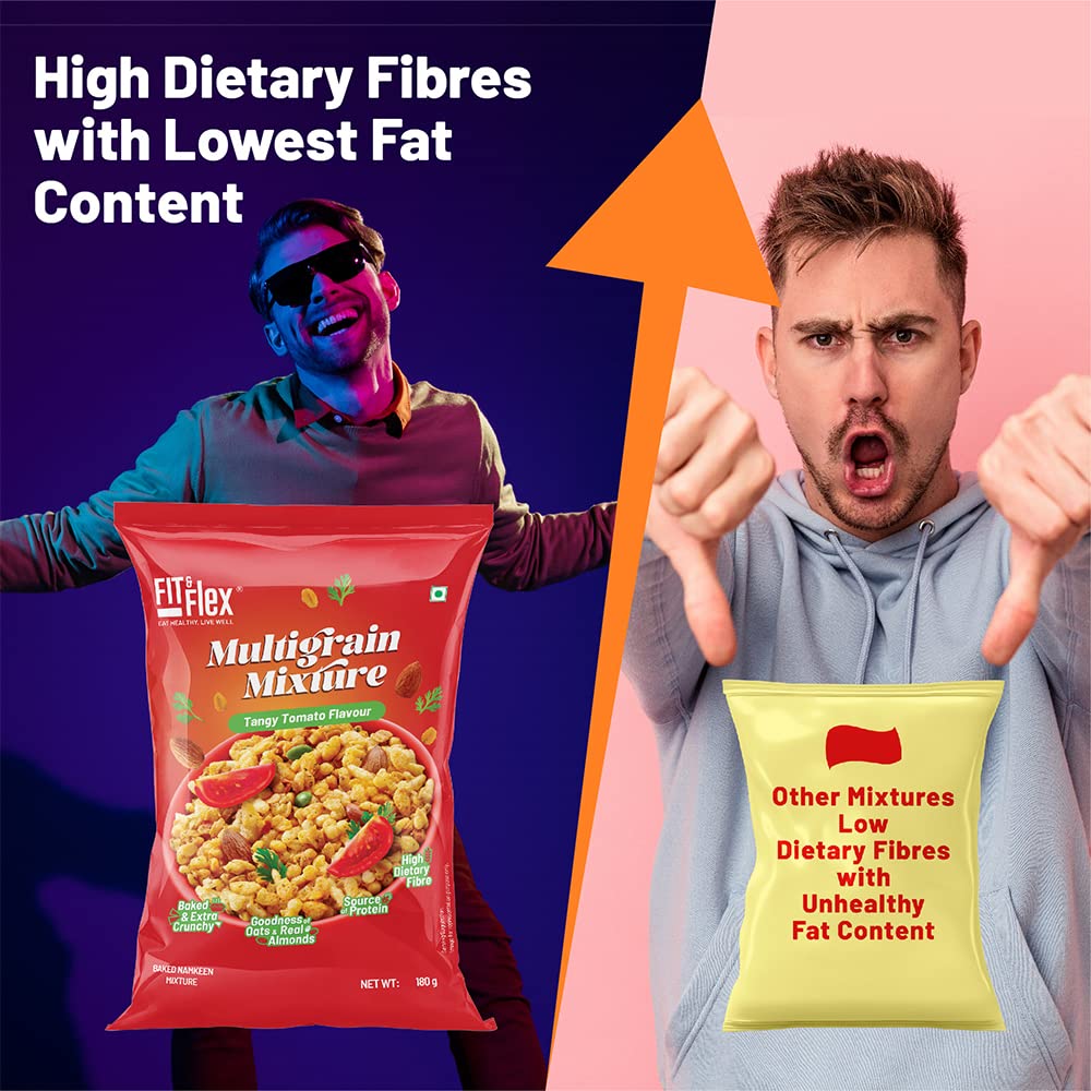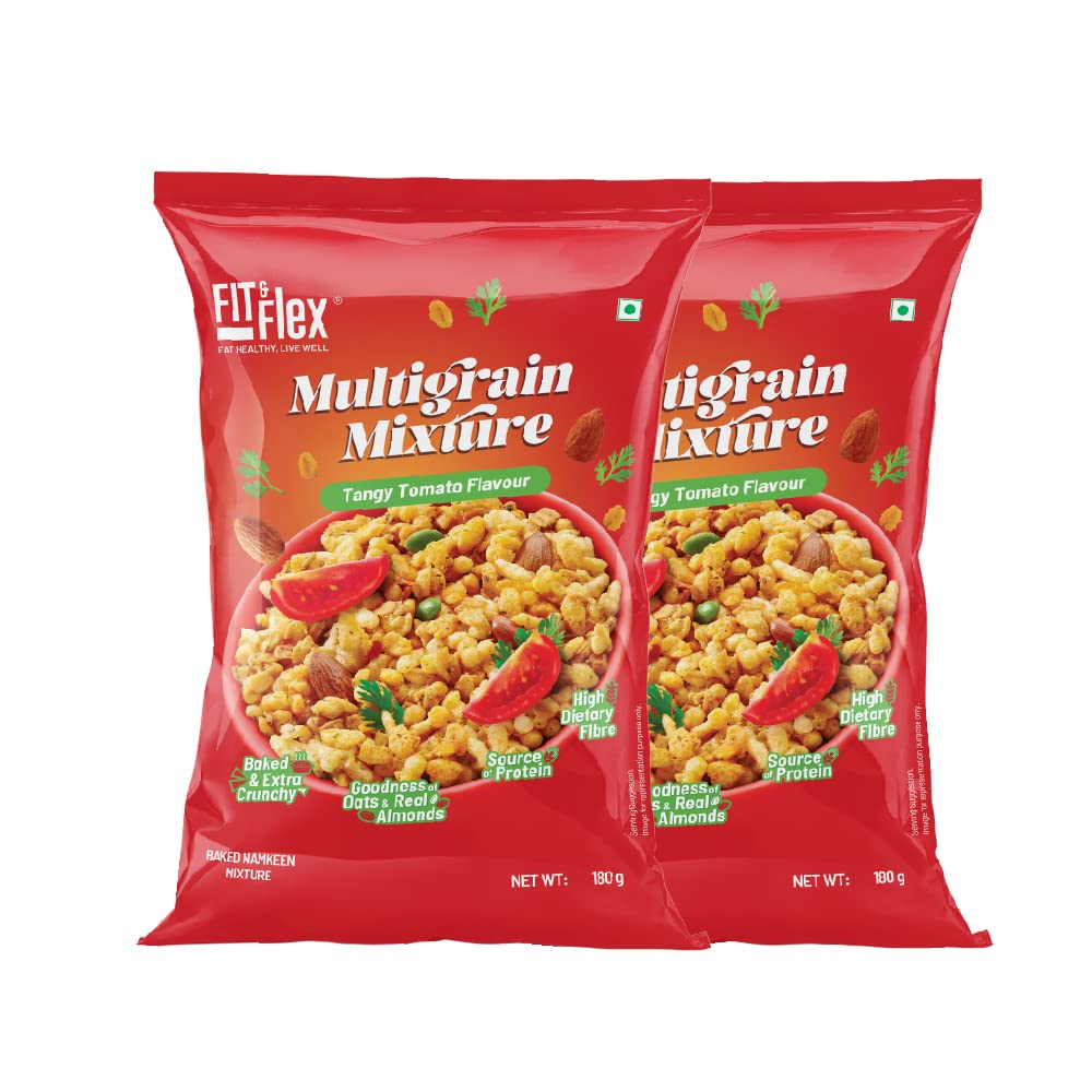 Fit & Flex Multigrain Mixture Tangy Tomato(180g x 2) Zero Cholesterol Oat Rich Extra Baked and Crunchy Snack High Dietary Fibre All-time Party Snack - As Seen on Shark Tank India - Pack of 2 360 Gm