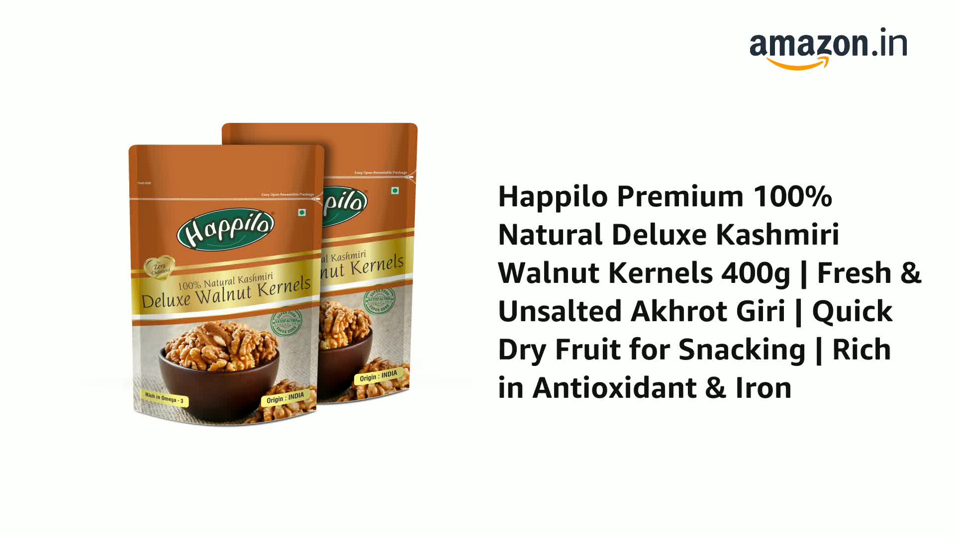 Happilo Premium 100% Natural Deluxe Kashmiri Walnut Kernels 400g | Fresh & Unsalted Akhrot Giri | Quick Dry Fruit for Snacking | Rich in Antioxidant & Iron