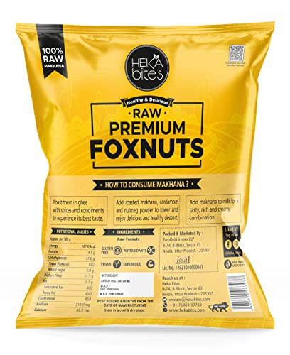 Heka Bites Raw Makhana 300g |Foxnuts| Rich in Protein and Dietary Fibre| Plant Based|0% Trans Fat| Superfood