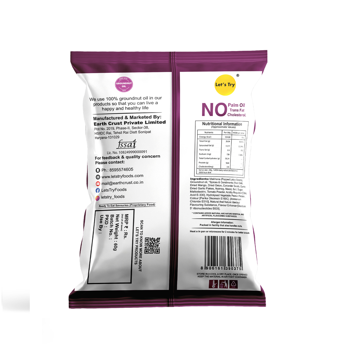 At Lets Try, we believe healthy snacking can be fun too. We follow traditional methods to make all our snacks, just like your grandma used to. We use 100% groundnut oil. No preservatives, No artificial flavors, or colors, no trans fats or cholesterol