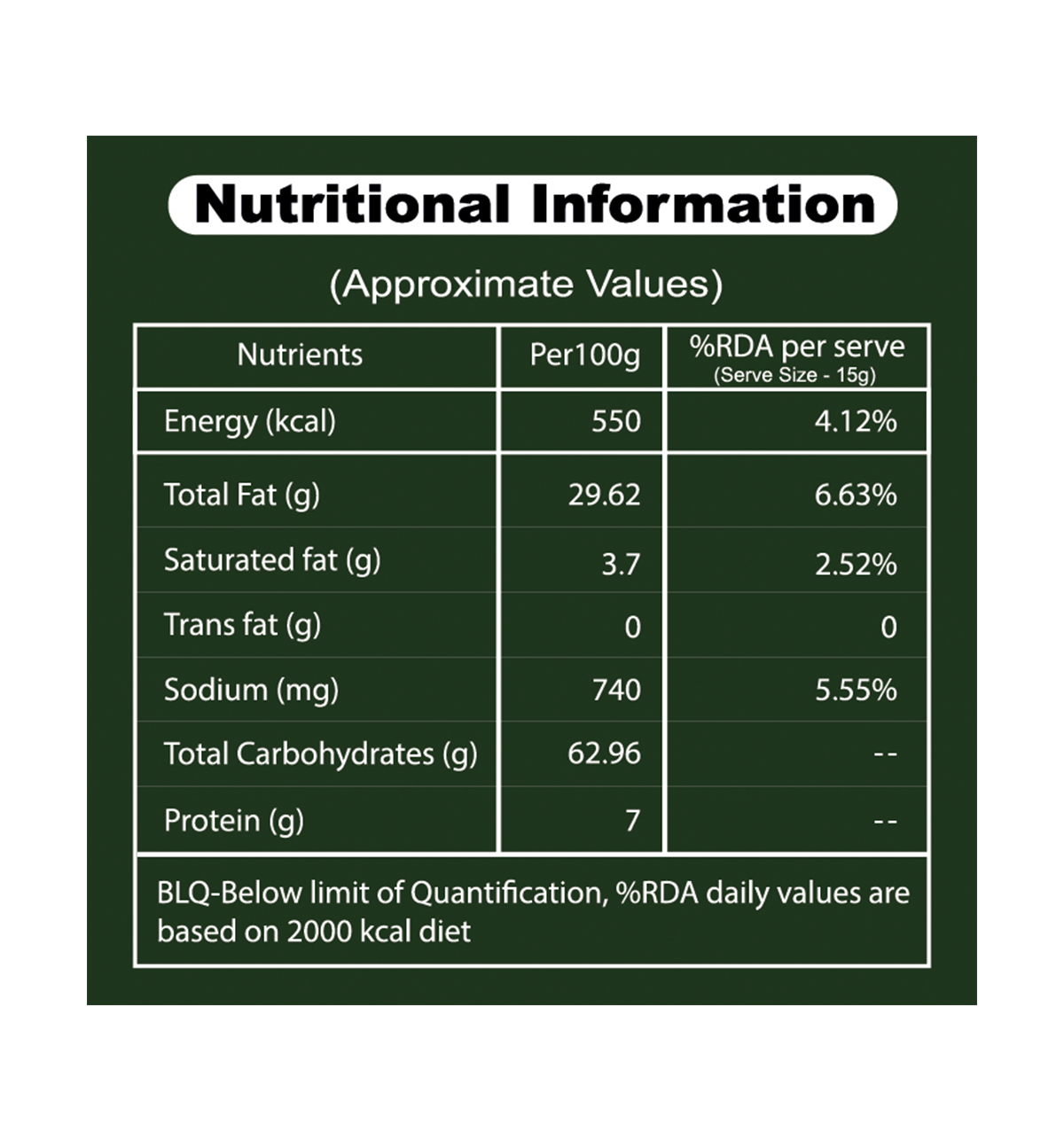 At Lets Try, we believe healthy snacking can be fun too. We follow traditional methods to make all our snacks, just like your grandma used to. We use 100% groundnut oil. No preservatives, No artificial flavors, or colors, no trans fats or cholesterol