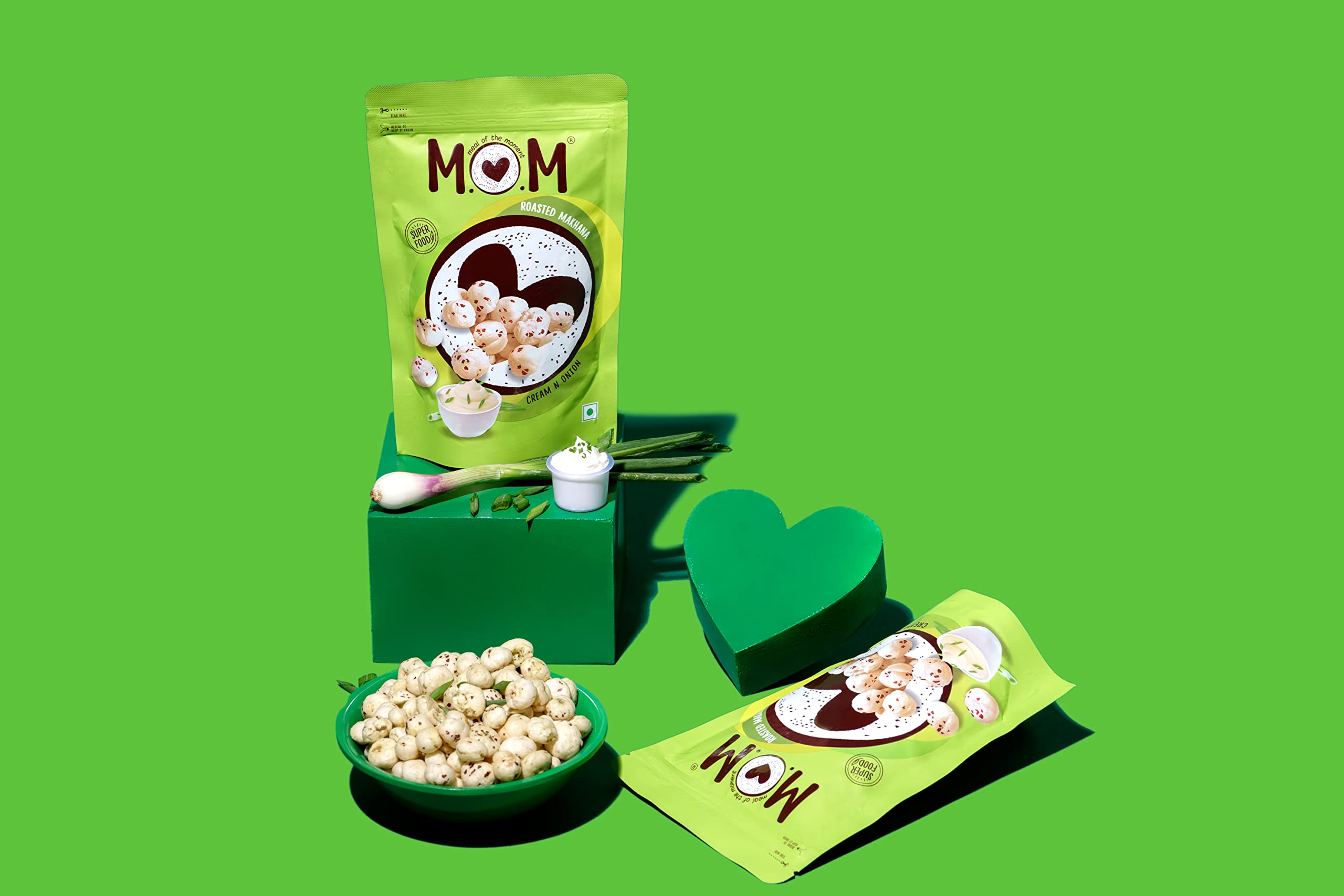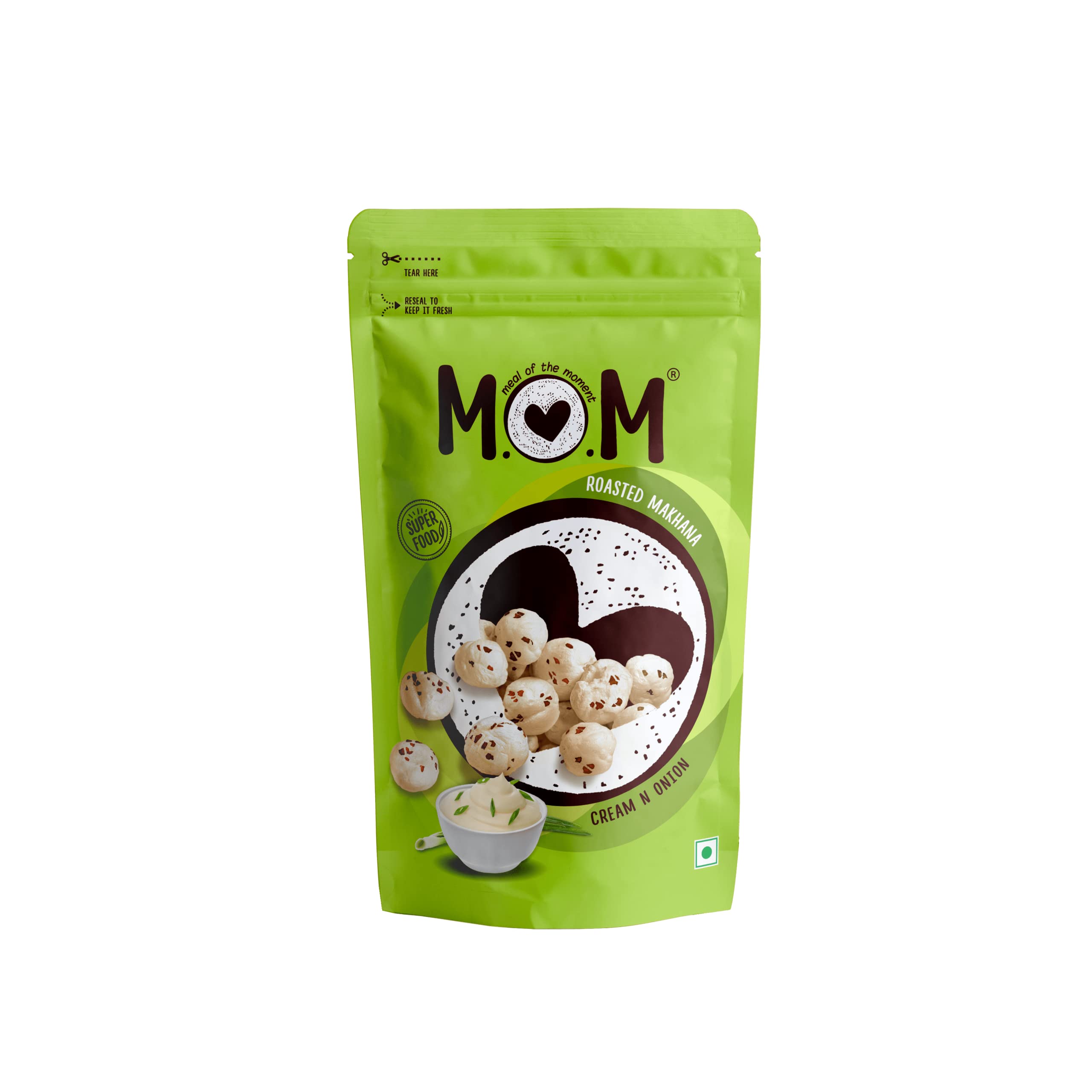 HomeGrocerySnacksHealthy SnacksMOM - Meal of the Moment Roasted Cream N Onion Makhana (Pack of 3) 52g Gluten Free | Anti Oxidants | MSG Free | Zero Trans Fat | No added Preservatives and No Artificial Flavours