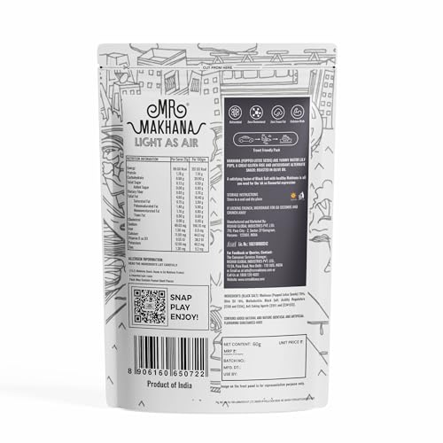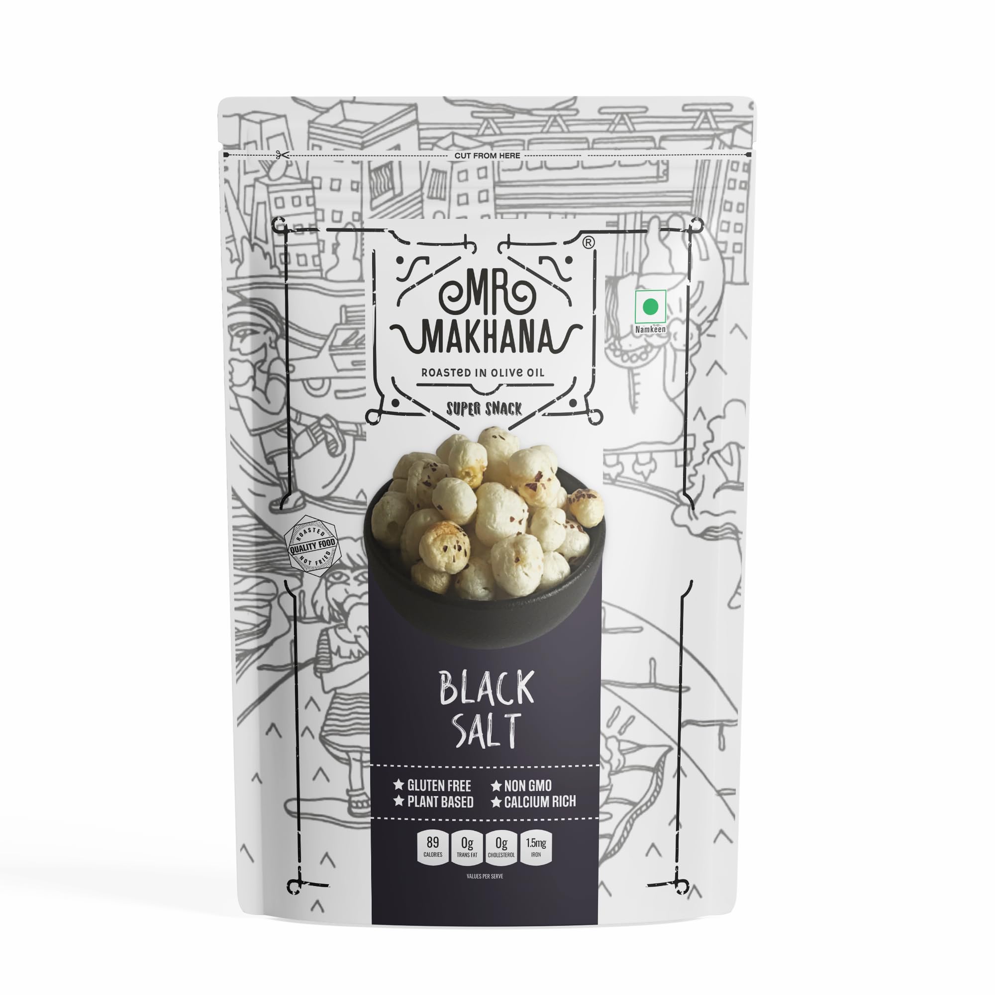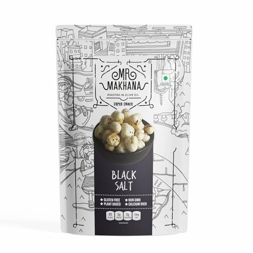 Mr. Makhana Roasted Makhana and Foxnuts | Healthy Snacks | Gluten Free | MSG Free | Antioxidant | Rich Calcium | Zero Trans Fat | Zero cholesterol (Black Salt) 55g