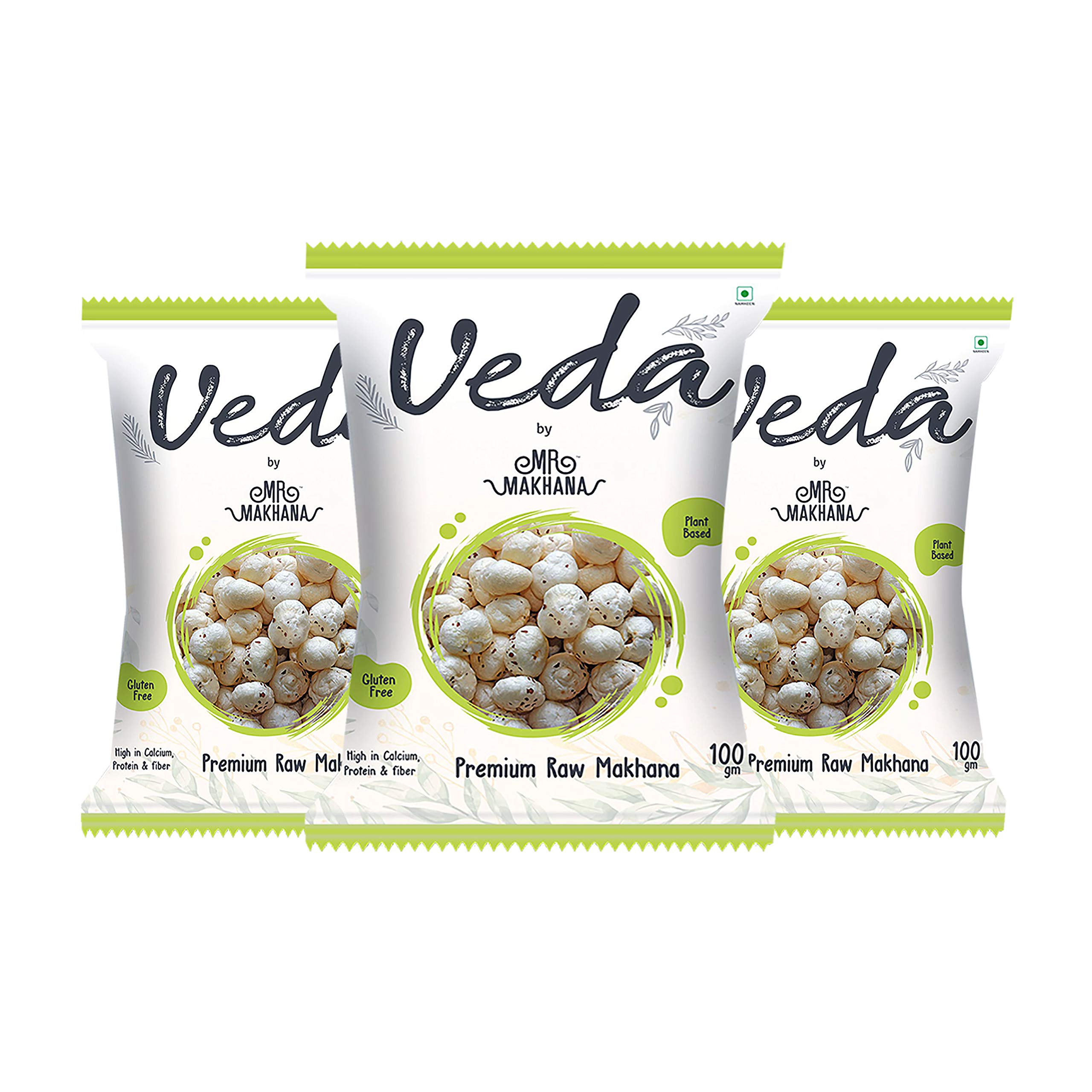 HomeGrocerySnacksHealthy SnacksMr. Makhana Veda Premium Plain & Raw Phool Makhana & Foxnuts : Plant Based Gluten Free High in Calcium Protein & Fiber (100 Gms) (Pack of 3)