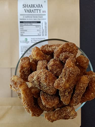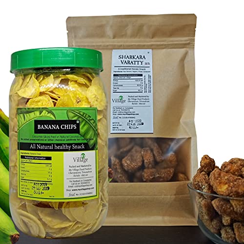 My Village Banana chips is a Natural Healthy Snack made from organic banana fruits. Thin crunchy slices prepared from natural wood-pressed coconut oil. This snack product is very healthy and tasty and contains No added preservatives or other chemical additives for taste color or flavor. Our yellow Kerala-made banana chips are less salty. Our banana chips are made from locally grown fresh organic bananas. Prepared from genuine coconut oil. We never re-use the oil. Every time fresh natural coconut oil Sharkkara Varatti or Sharkkara upperi is a Kerala traditional snack served with meals / Feast. This jaggery-coated banana is a very good snack with tea or coffee. My Village Homemade Sharkkara Varatti is made with Natural and Organic ingredients like Jaggery Banana (Kerala locally grown) Cardamom seed powder and Ginger. We never add any kind of preservatives or additives for color flavor and taste. We fried and prepared in sunflower oil
