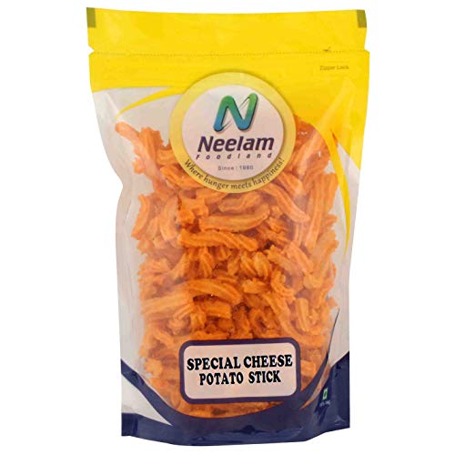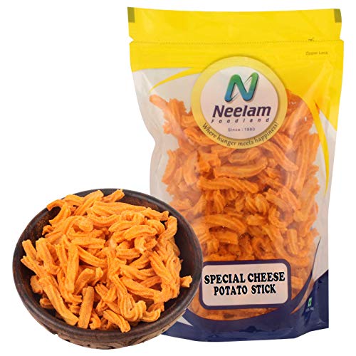 Neelam Foodland CHEESE POTATO STICK: Crisp and Delicious cheese potato sticks. While it is perfect to have on a cold rainy day with a cup of chaai this versatile snack is also light enough to enjoy on a hot summers day with a glass of juice or to take along to school or office in a snack box
