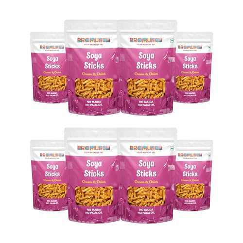 PROMUNCH Soya Sticks |Crispy & Healthy Protein Snack | Guilt Free | High-Protein Savory Treat | No Palm Oil And No Maida | Cream & Onion Flavor - 30 g Pack of 8| Ideal Snack for Health-Conscious