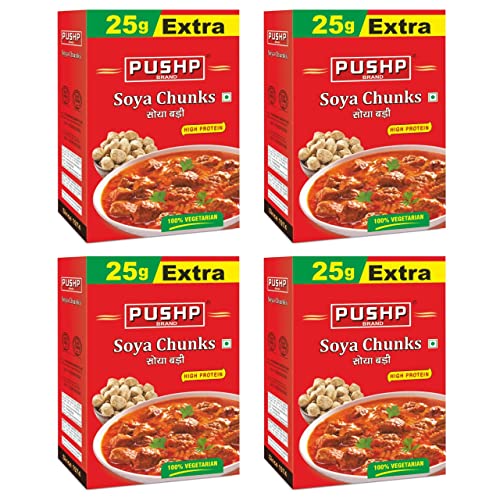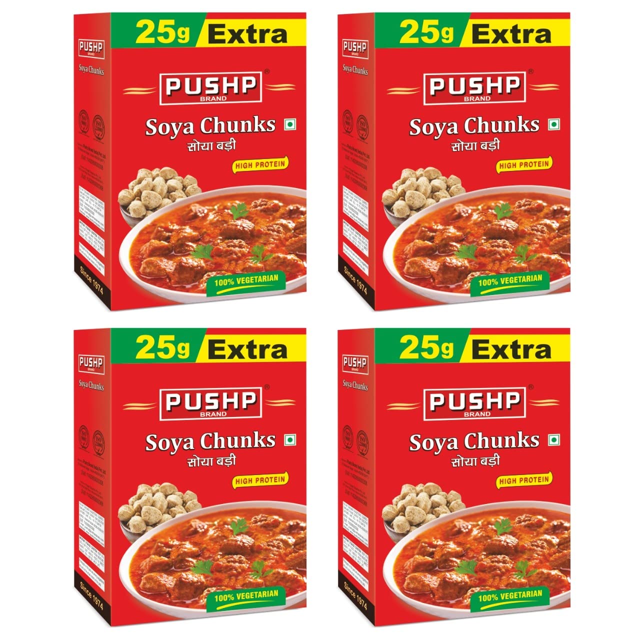 Pushp Brand SOYA Chunks - High Protein and Pure Vegetarian SOYA Wadi (200g) (Pack of 4)