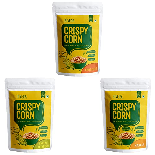 Rivera Crispy Corn Pack of 3 (Barbeque Cheese Jalapeno Masala)-110g Each | High Iron Snacks | Zero | Zero Trans Fat | Healthy Snacks