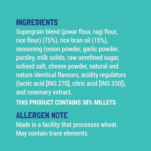 • Made with Ragi and Jowar coupled with a lovely cheesy flavour and a hint of parsley made from the best quality natural ingredients.