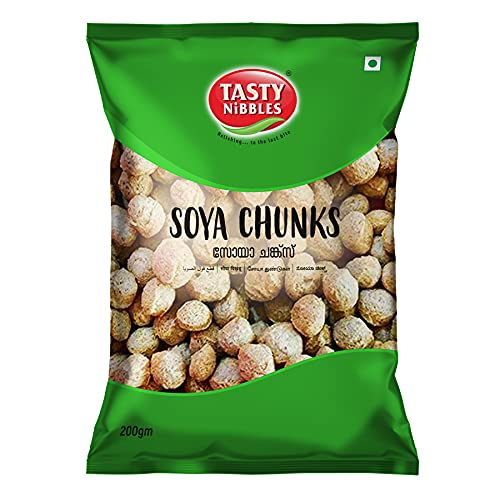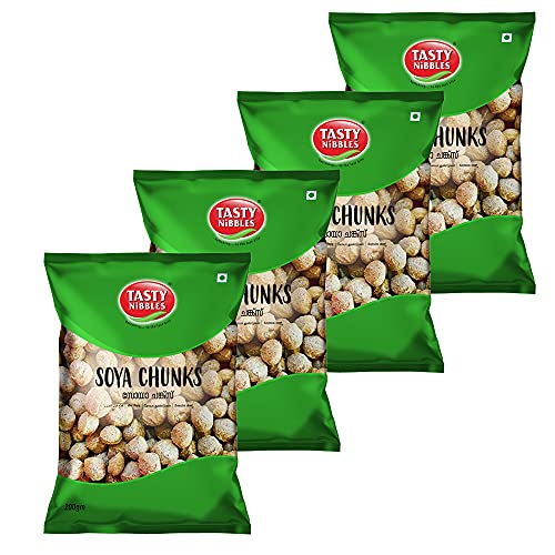 Tasty Nibbles High Protein and Healthy Gluten Free SOYA Chunks Big / Soyabean Wadi 200g x 4 [800g Pack of 4]