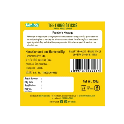 Timios Multigrain Teething Sticks|Organic Snack|Dissolves Easily|Wholewheat Ajwain|Pack of 2|150g