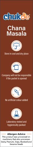 Origin Chana masala is a staple dish of North India. However it has become a popular choice for many globally as it is a vegan and protein-rich dish. It's mostly made with chickpeas or safed chana as the main ingredient. Cooking Uses Typically used for chickpeas preparation the intense flavour of Chana Masala can any dish up. to other protein-filled dishes like black gram and rajma for richer curries. Chukde Advantages We grind our spices to make sure their natural aroma and flavours are retained. All our Spices pass through ETO Sterilization before being packaged and sold. Authentic blend with the best 18 ingredients to recreate your favourite dish safely.