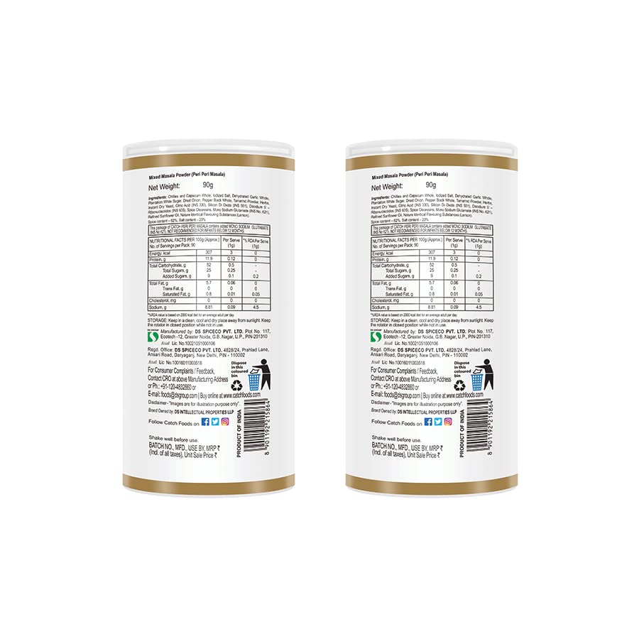 Spice up your salads snacks and fruits by sprinkling a pinch of Catch Peri Peri Sprinkler. Be it french fries nuggets Pizza this spice works its magic in every dish! Catch Peri Peri Masala Sprinkler is a blend of choicest spices blended to gibe you perfect tang. With the sprinkler pack adding Chat Masala to your food becomes an easy affair. Catch Ka Koi Match Nahi. 100%.