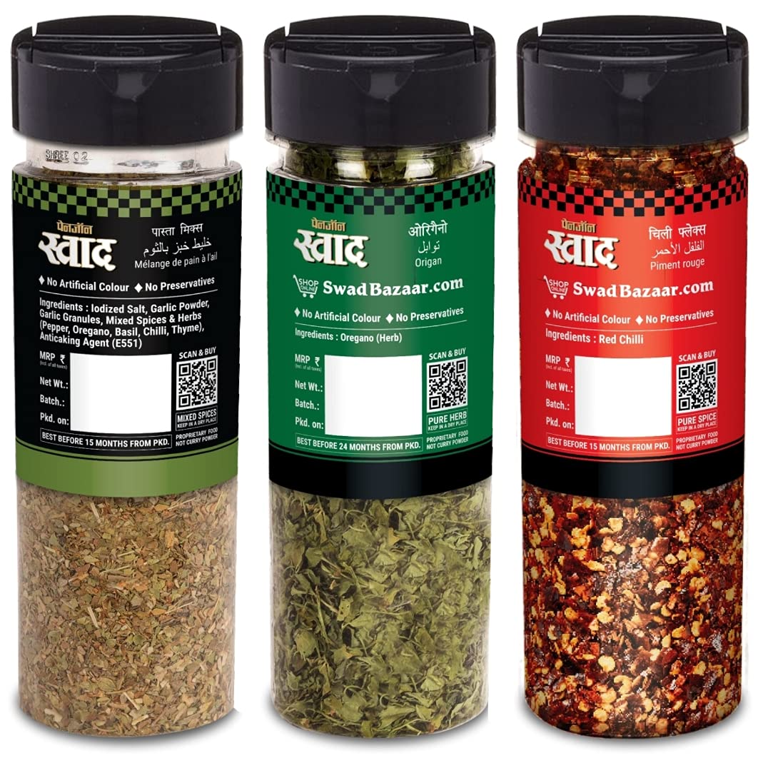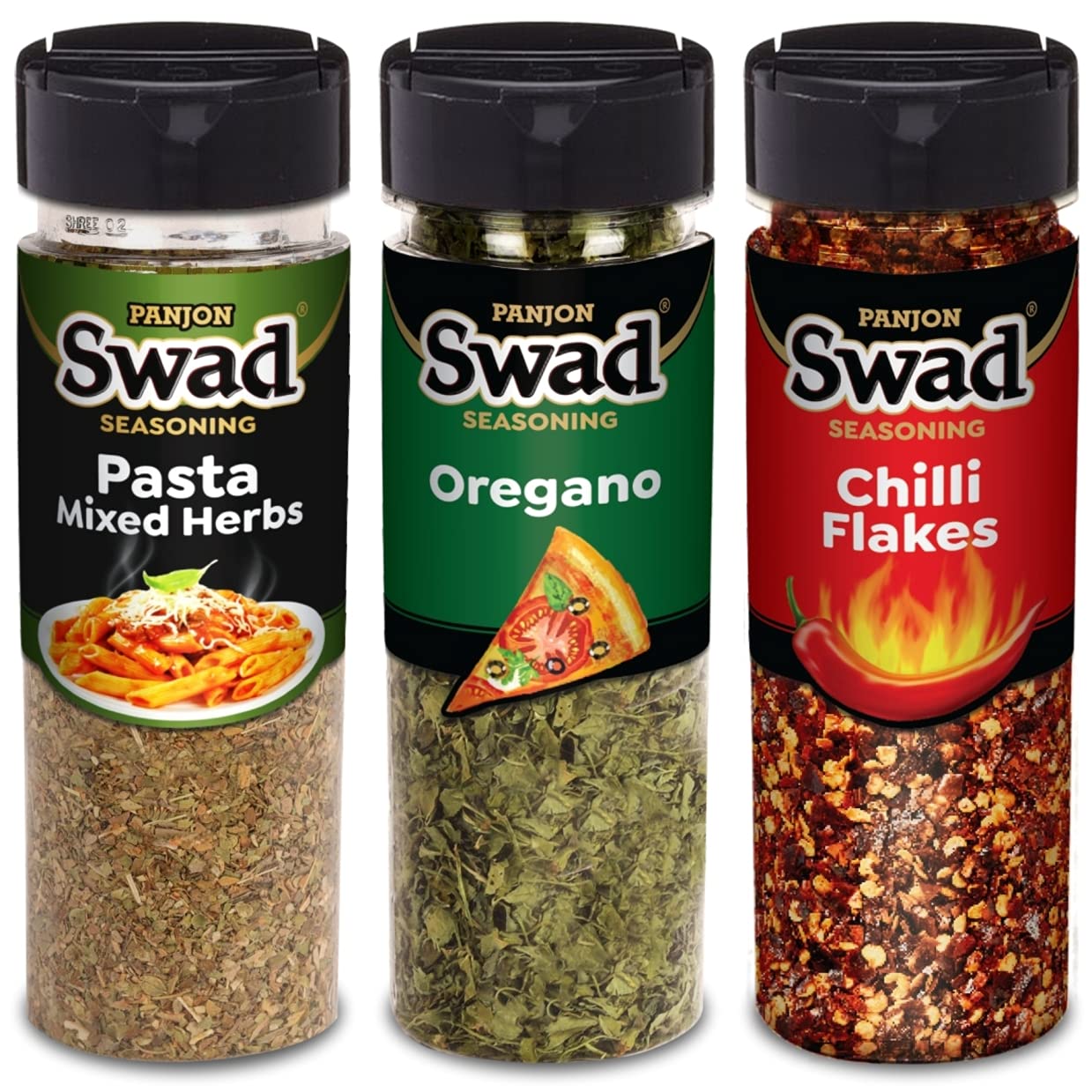 Panjon Swad Oregano, Pasta Mixed Herbs Seasoning & Chilli Flakes, 0% Preservative (3 Bottles) 300G