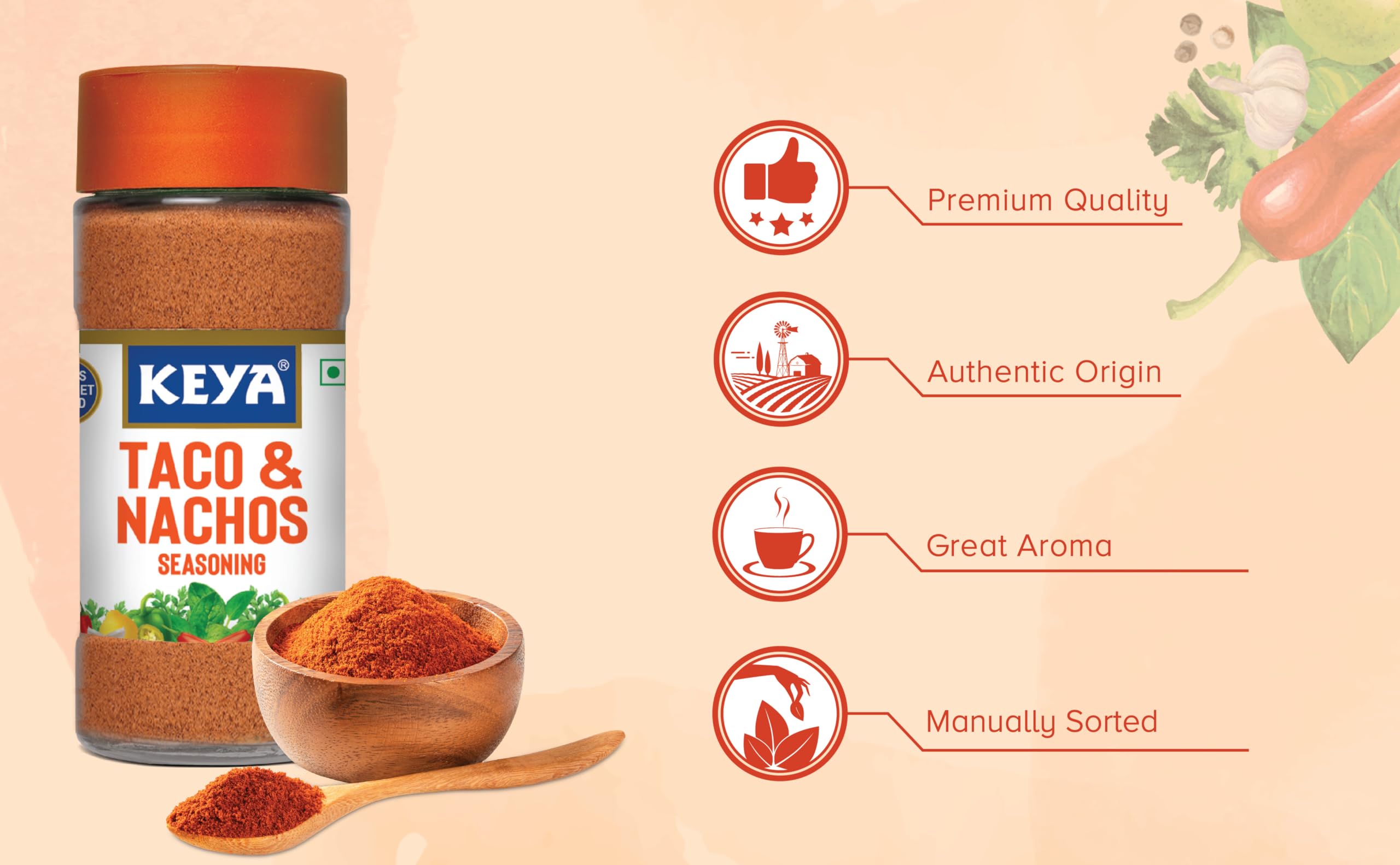 Keya Tacos Nachos Seasoning 75g | Authentic Mexican Flavors | Seasoning for Taco Nachos & Burrito | Mexican Style Spice Blend