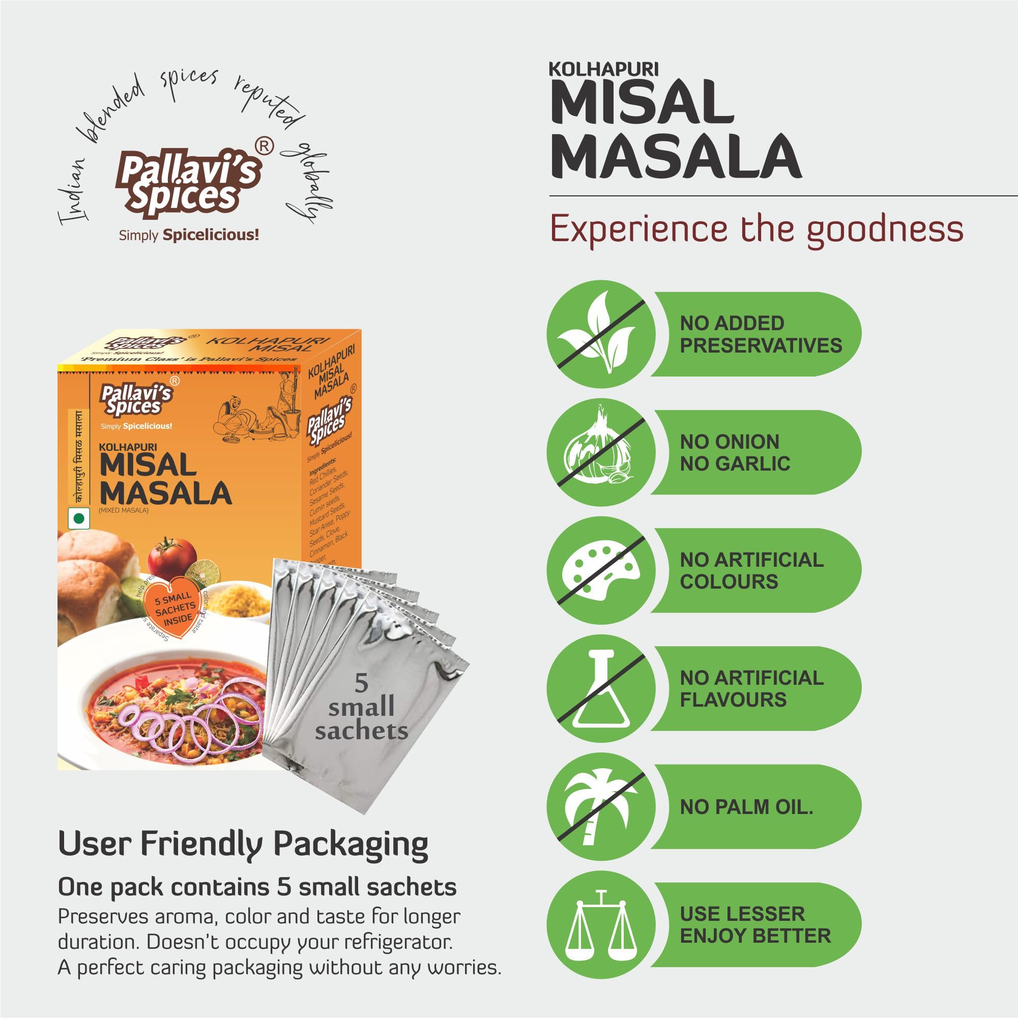 Serving Size: Every single sachet (10g) can make Misal for minimum 4. No need to add Chilli Powder and other Garam Masala