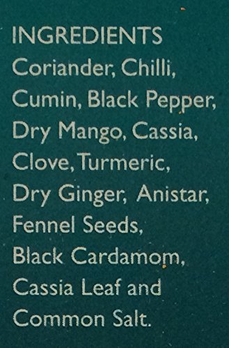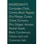 Coriander dry mango cumin chilli black cardamom cassia leaf black pepper dry ginger anistar fennel seeds common salt
