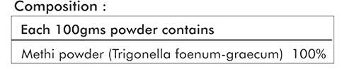 Ingredients: methi seed powder. All our products are made from quality items. We recommend that you read labels warnings and directions of all products before use and not rely solely on the information. Care instruction keep away from the items or products which may cause damage to this product.