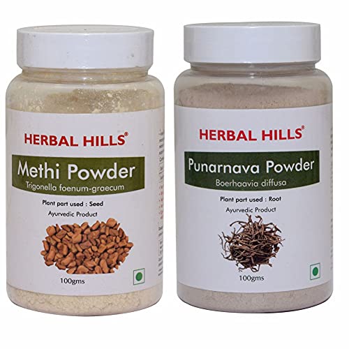 Herbal Hills Methi Seed Powder and Punarnava Powder - 100 gms each for liver kidney care sugar control and joint care