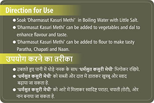 Kasuri Methi refers to a dried leaves of a Fenugreek plant. Kasuri methi leaves is an herb with a bitter but addictive taste. This kasoori methi powder is used as spice in Indian curries sabzi parathas. Kasuri methi gives your dishes a distinctive aroma and a delicious taste. Dharmasut Kasuri Methi comes from the best farms in India so you can enjoy this Indian spice to enhance the flavor of your dishes.Dried Fenugreek leaves contain various vitamins minerals and plant compounds that have been shown to improve health in many ways. It adds a fragrant flavor to your food like Dal various Sabjis and you can also make methi paratha naan kulcha mathri khakra papad etc.
