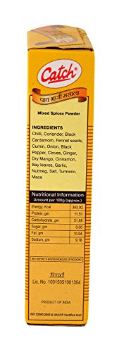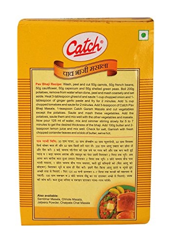 Catch Spices Pav Bhaji Masala is used to make tasty and spicy pav bhaji which is a dish relished all across the country. This masala is an amazing combination of perfectly blended spices that give exquisite taste to this delicacy. It is fine in texture and enhances taste of your dish.
