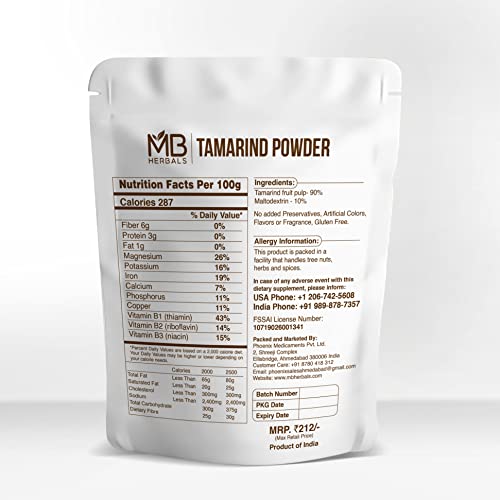 MB Herbals Tamarind Powder 250g | No Preservatives Add Tamarind Powder to : Chutneys Sambhar Marinades Candies etc Allergy information : This product is packed in a facility that handles tree nuts herbs and snacks.