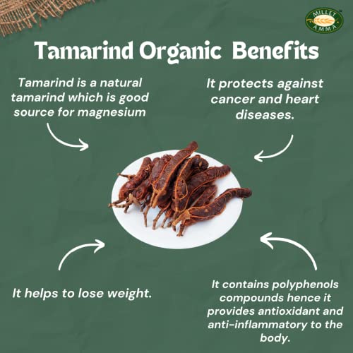 Milletamma's Tamarind is a natural tamarind which is good source for magnesium. It contains polyphenols compounds hence it provides antioxidant and anti-to the body. It protects against and s. It helps to lose .