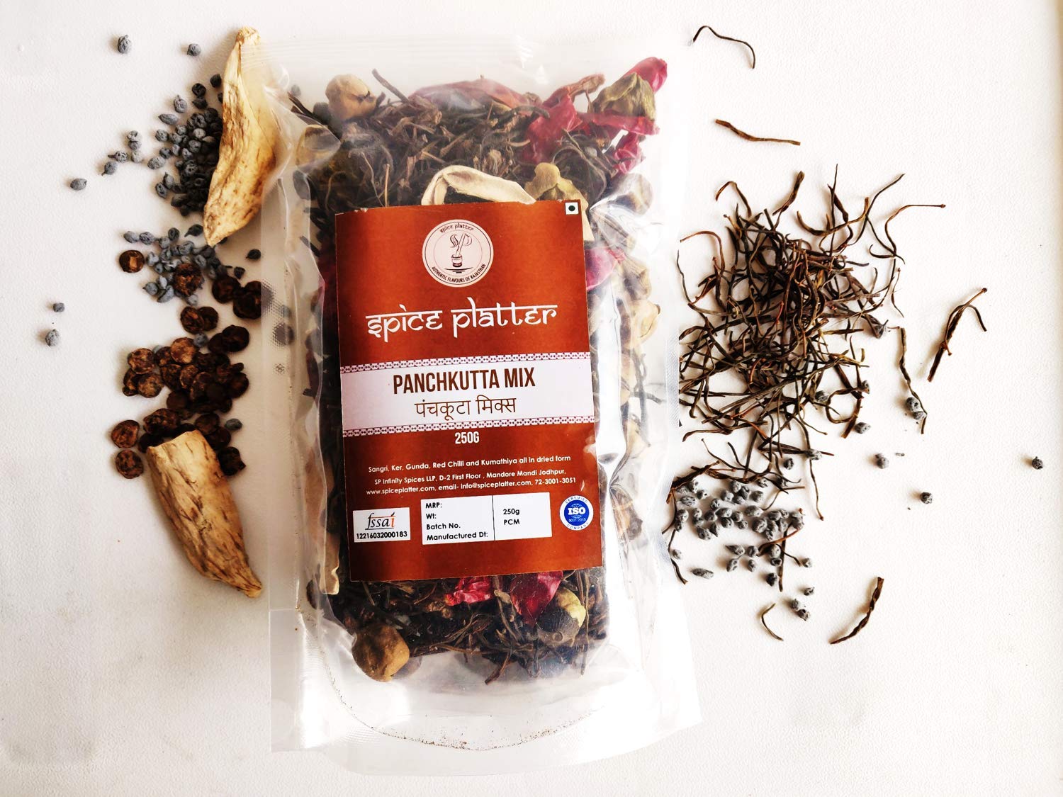 Spice Platter Panchkutta Mix - 250g (Mix of fine Quality Sangri Ker Kumathiya Mirchi Tadka Gunda and Whole Amchoor)