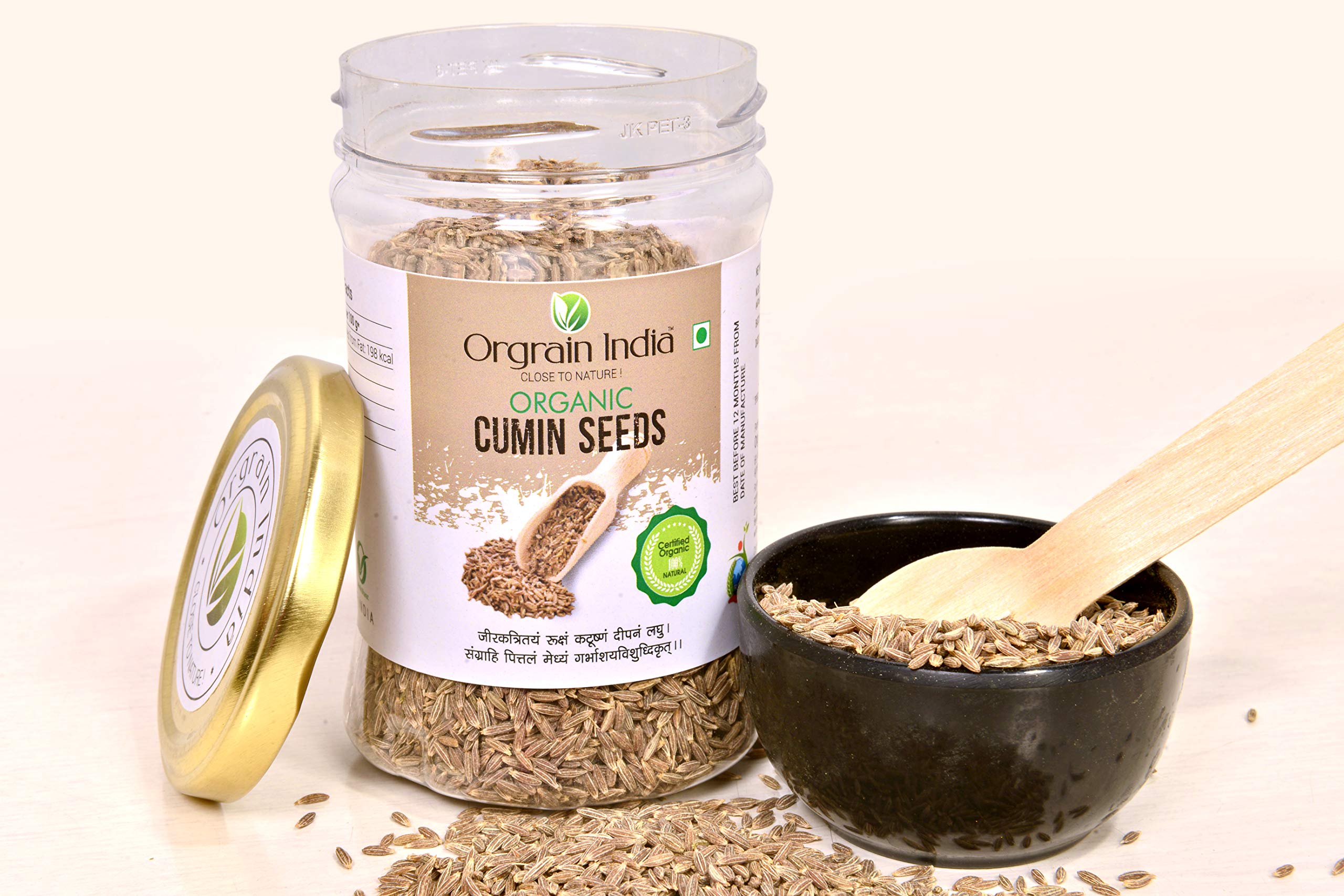 Orgrain India Certified Organic Cumin/Jeera Seeds Whole (Cuminum cyminum) 120g | Company-Owned Farmlands